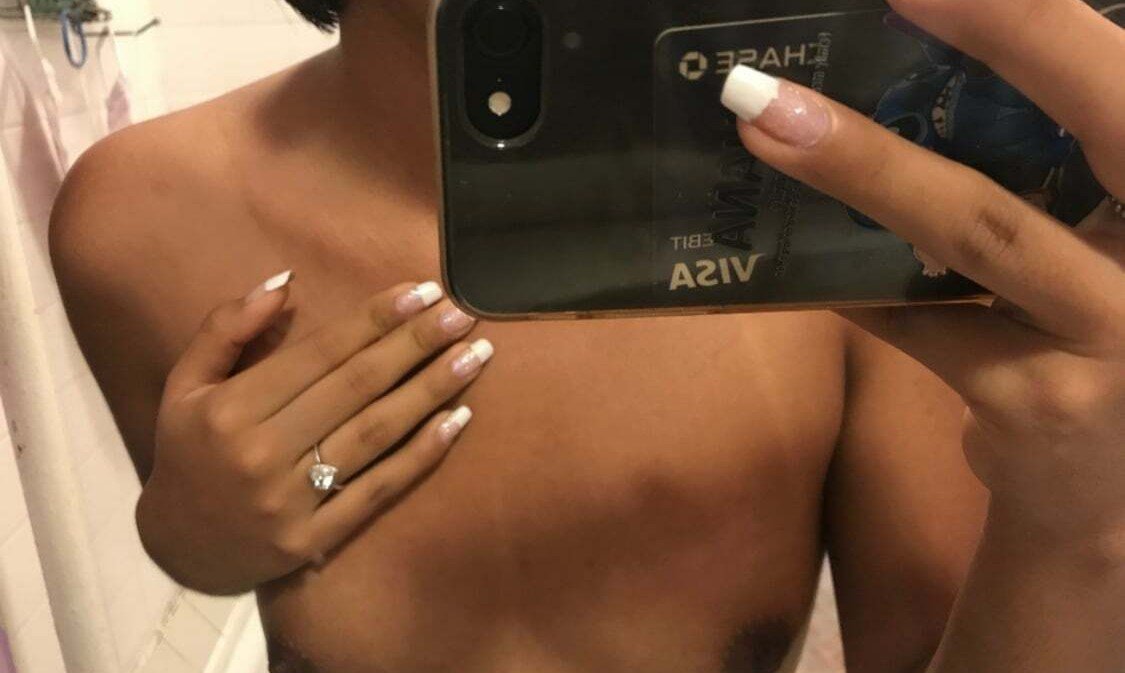 a girl jacking while in bed with her fuckbox out